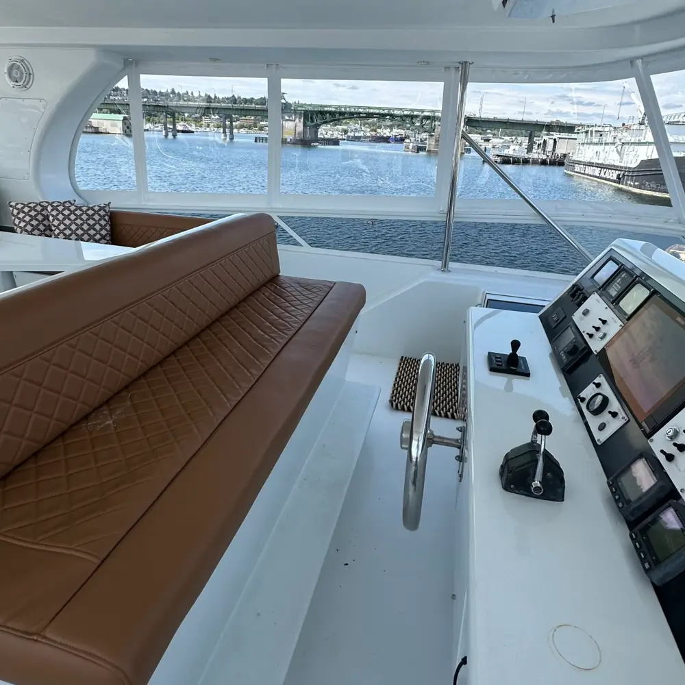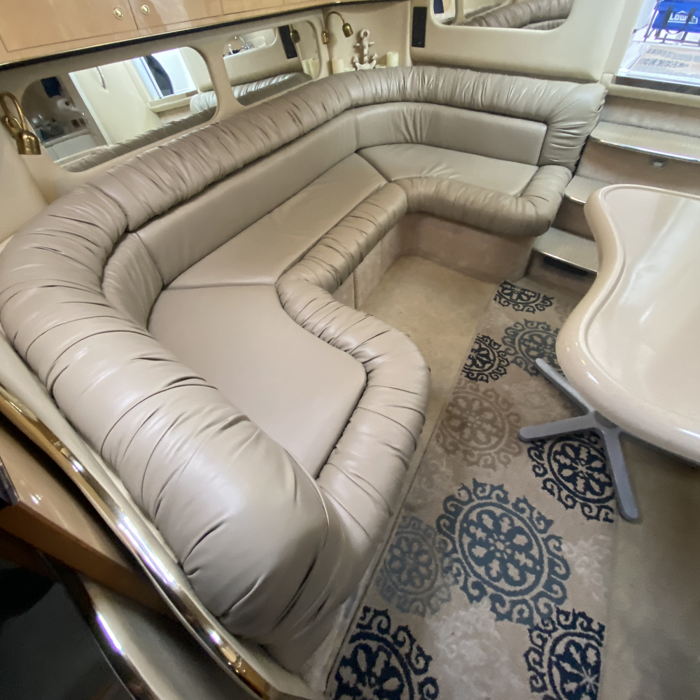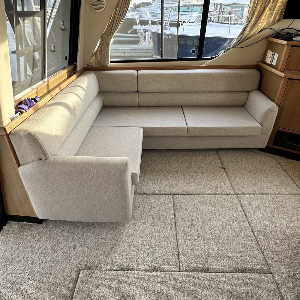 Another beautiful transformation completed! We’ve refreshed the interior of this Bayliner 4788, reupholstering the main salon couch, the pilot house sofa, and the captain’s chair. For this project, we used the high-end and durable UltraLeather material — a favorite among boat owners for its premium look and performance.